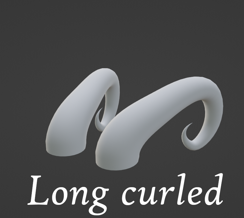 Horn PackWhiskeredShadowsA pack of 6 horns I modeled from scratch in BlenderFree to use on whatever, just credit me please ^^$2+2usdCurled$2+2usdTall Dragon$2+2usdLong Curled$2+2usdShort Spiral$2+2usdSmall Curved$2+2usdTall Spiral$10+10usdAll Horna72usdName a fair price:$I want this!Add to wishlist New wishlistShare on XShare on Facebook Copy linkCopy product URL